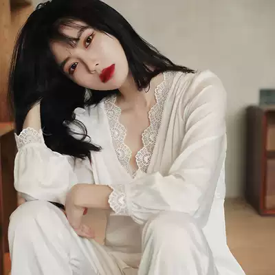 Word of mouth recommended designer style ~ OLOEY pajamas female summer lace Thin Ice Silk Home clothing celebrity style