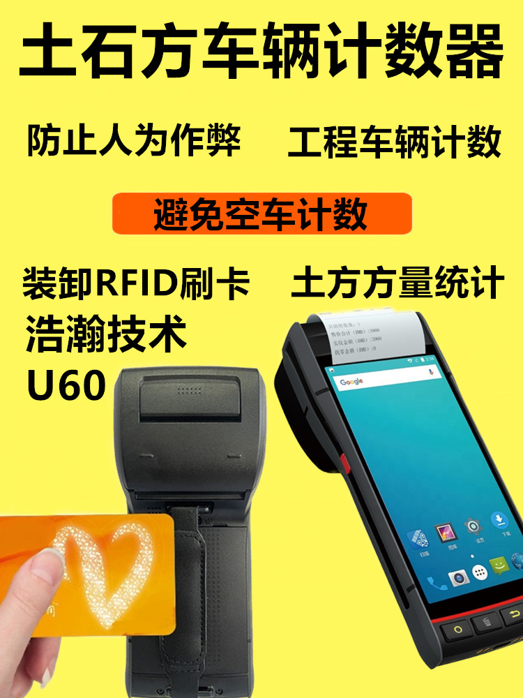 Earthwork volume handheld wireless card reading counter engineering transport slag earth management system software plate number ticket machine