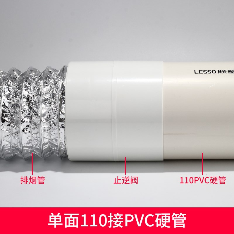 One end is connected to 110PVC, one end is connected to 80 100 smoke exhaust pipe, two sides are connected to 110PVC hard pipe, one end is connected to 75PVC, one end is connected to 80 100 smoke exhaust pipe, two sides are connected to 75PVC