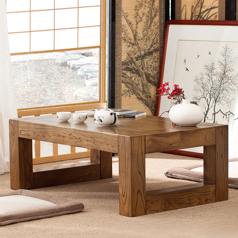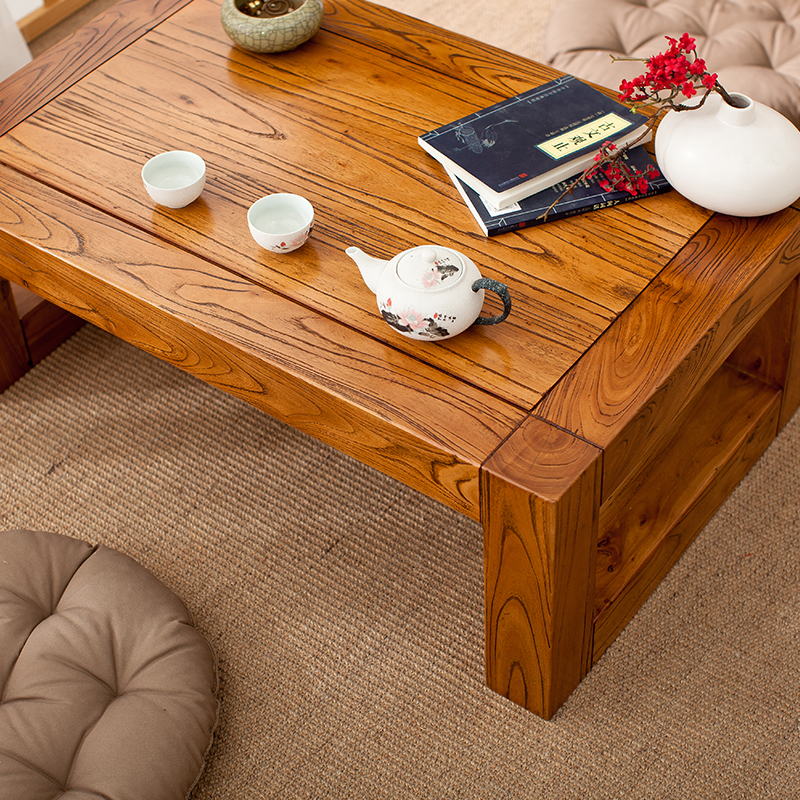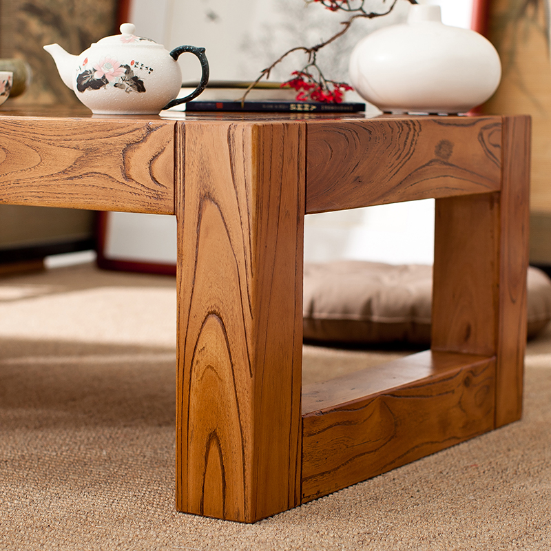 Solid wood floating window small tea table Japanese tatami low table elm small tea table low table Zen kang table can be customized