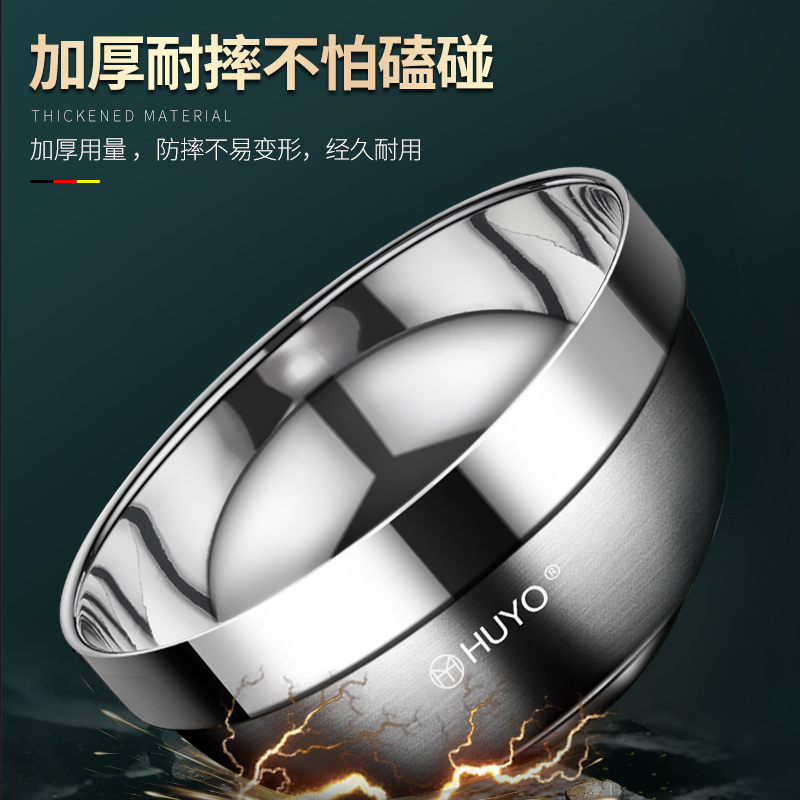 HUYO304 stainless steel bowl double-layer anti-scalding bowl children's anti-scalding heat-insulating bowl canteen noodle bowl household baby rice bowl