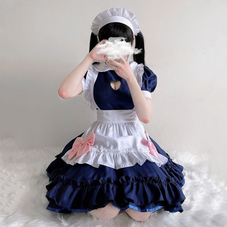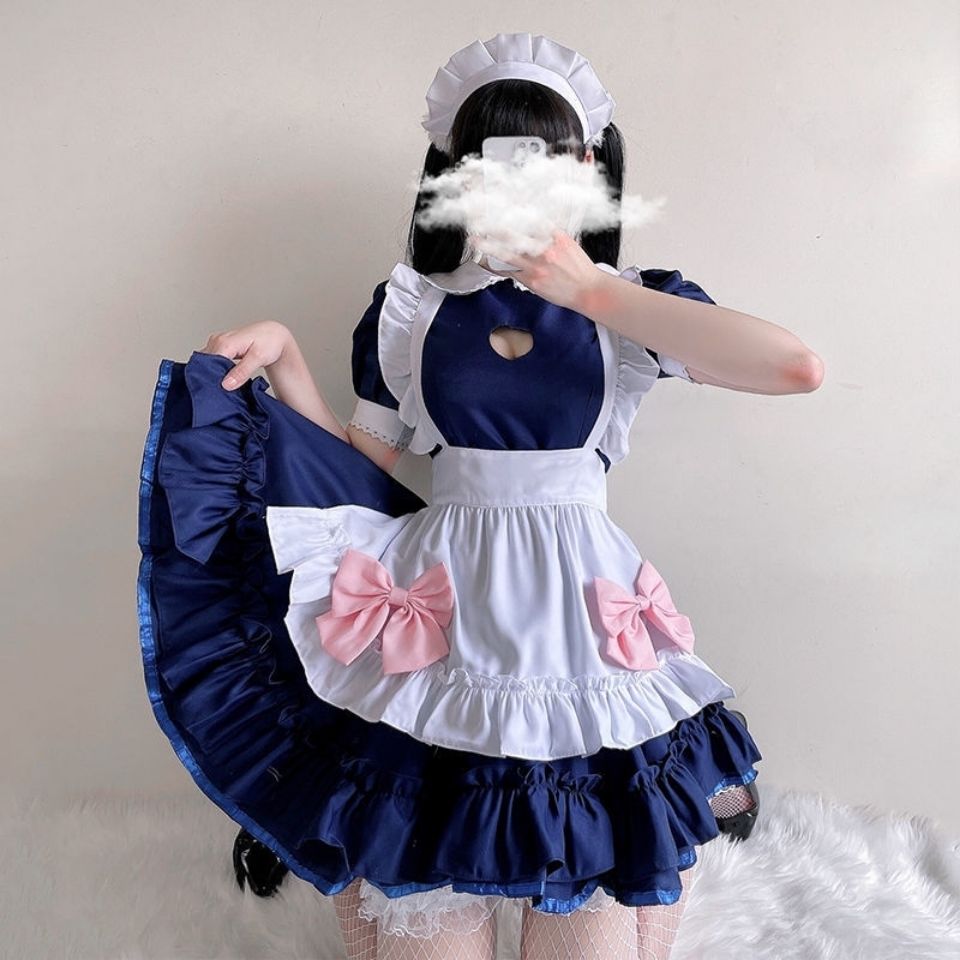 New Japanese blue and white maid Women's Big Brother Daily maid cute lolita dress set size