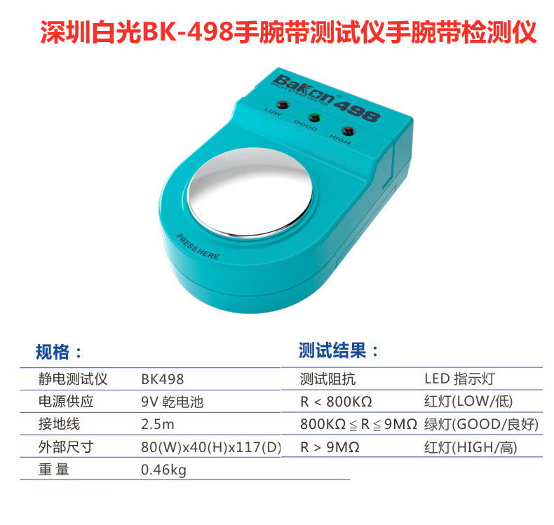 Shenzhen Baiguang BK-498 Anti-static Wristband Tester 498 Static Ring Tester 498 Tester