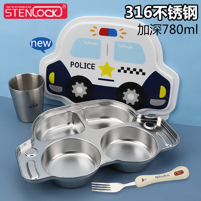 316 stainless steel food grade car dinner plate toddler baby sub-cutlery cutlery children home eating with suction cup 304
