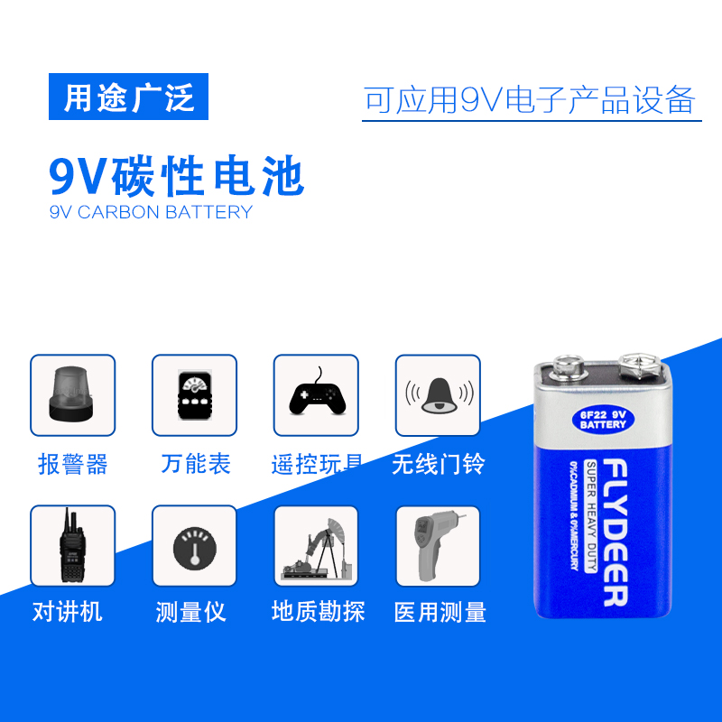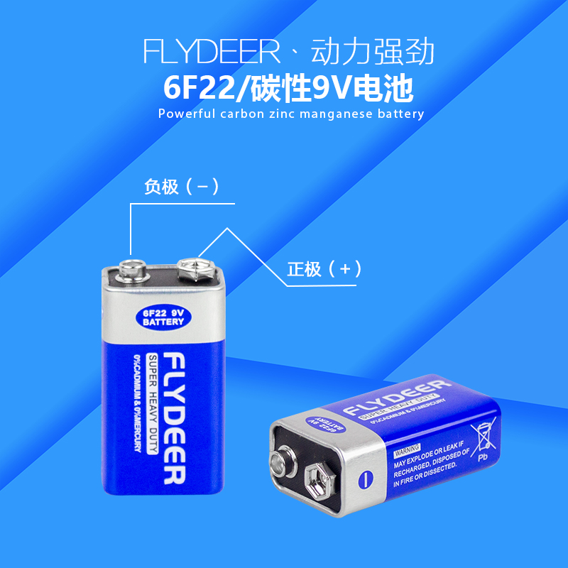 Feilu 9v battery square battery 6F22 square carbon battery multimeter audio smoke alarm battery