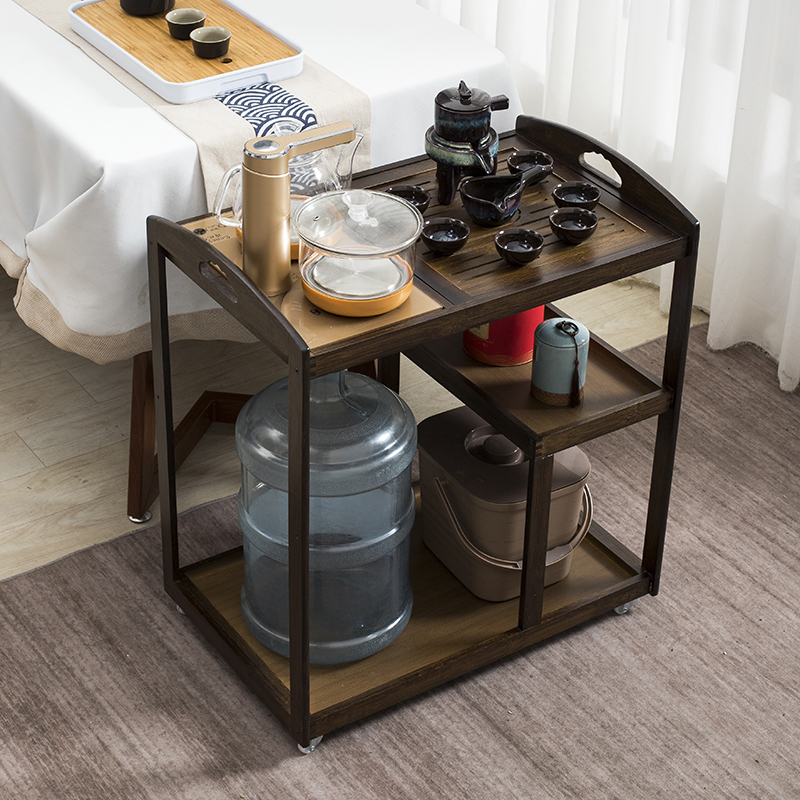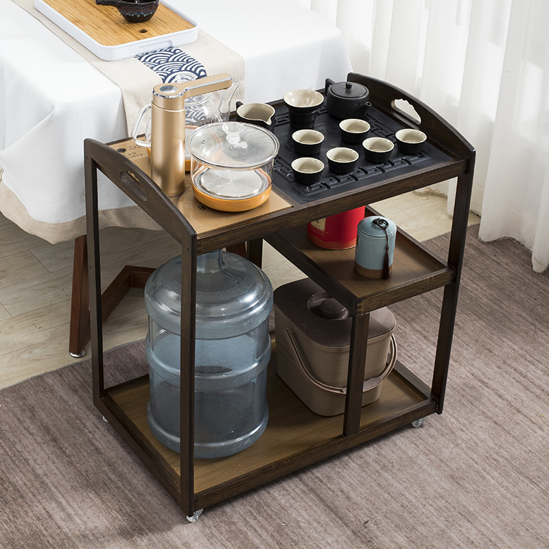 Mobile tea table home small tea table tea table side cabinet solid wood balcony tea making car tea set set integrated tea cabinet