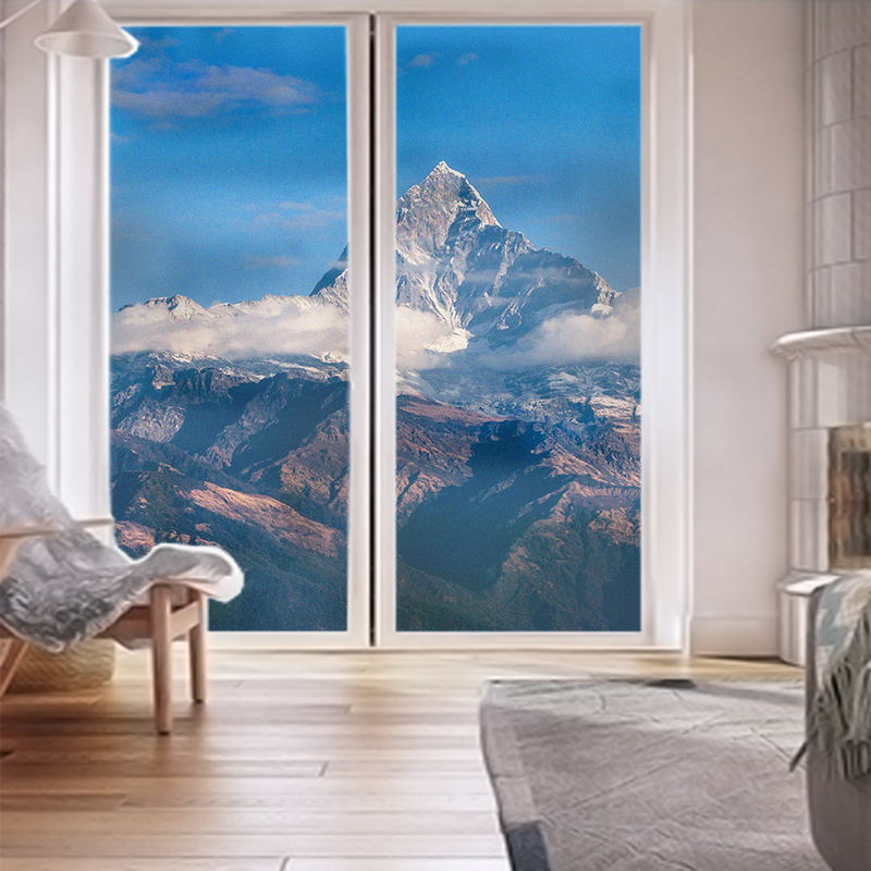 National wind glass sticker anti-walking light decoration bedroom Ramen film Adhesive Film Atmosphere Living-room Landscape Painting Window Sticker Anti-Peep