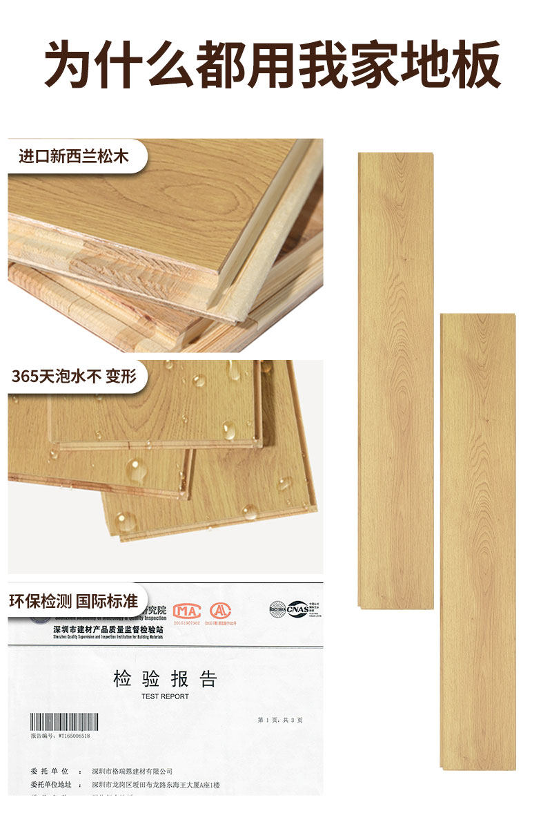 Three-layer multi-layer solid wood composite wood floor home 15mm light gray oak floor lock log bedroom floor heating