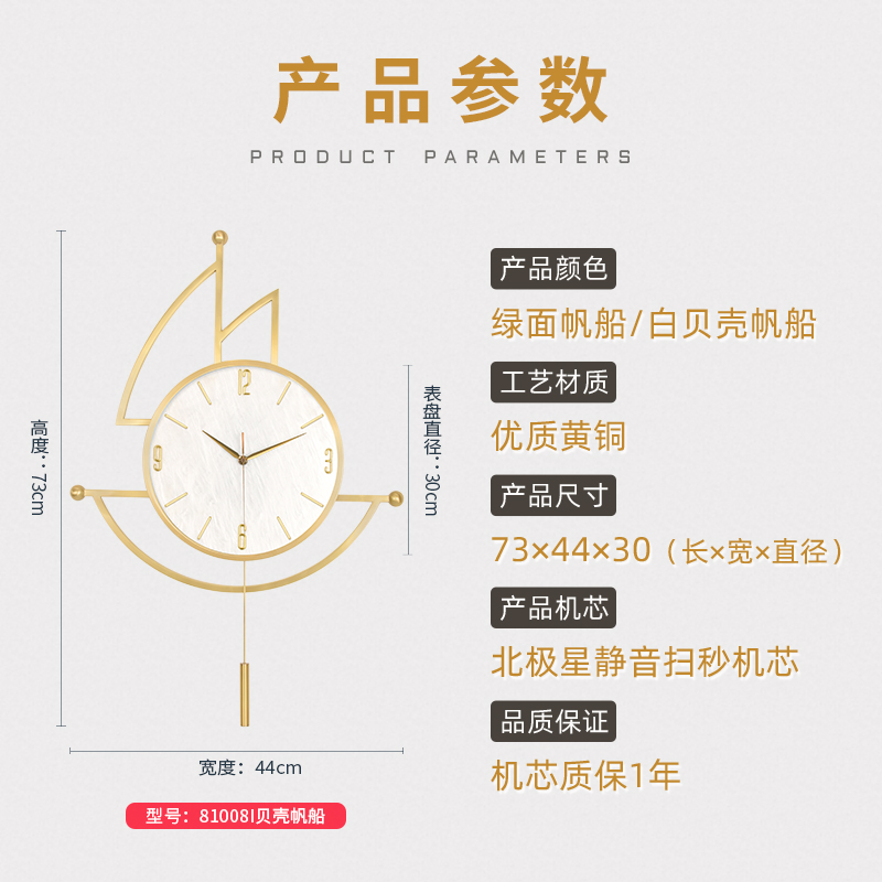 Polaris light luxury pure copper wall clock living room modern minimalist home clock personality creative decoration wall clock