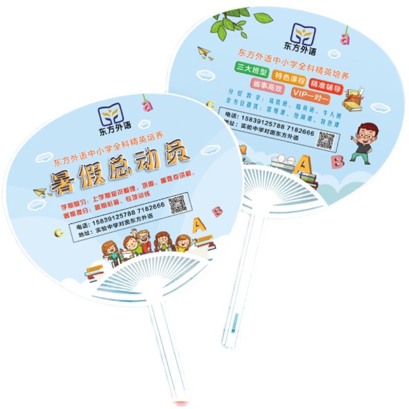 Advertising fan customized pp plastic circular cartoon enrollment education promotion promotion hospital advertising fan customized