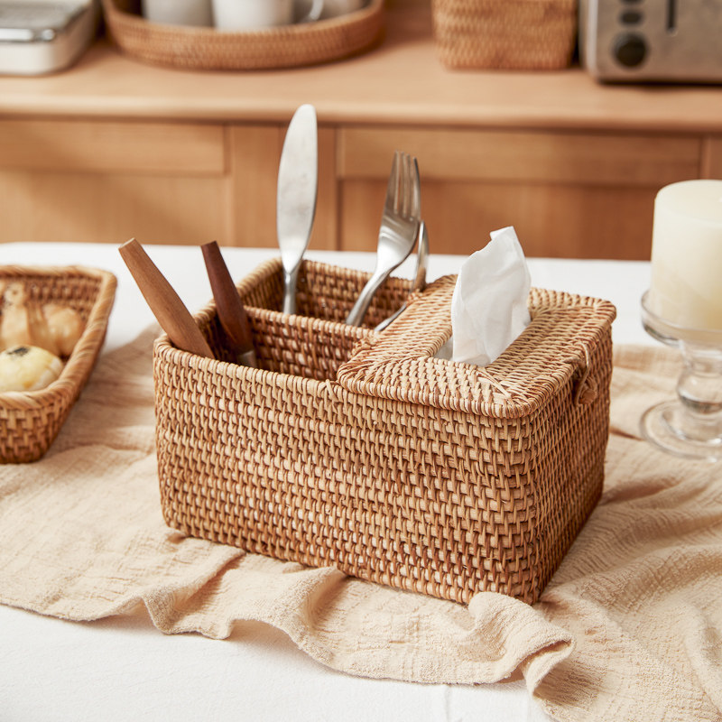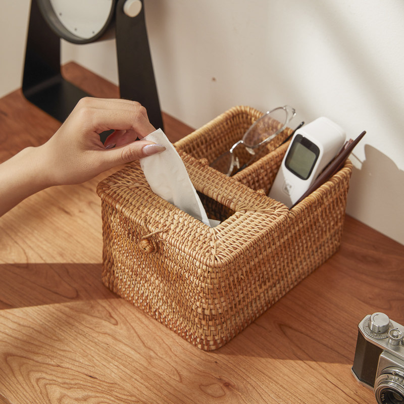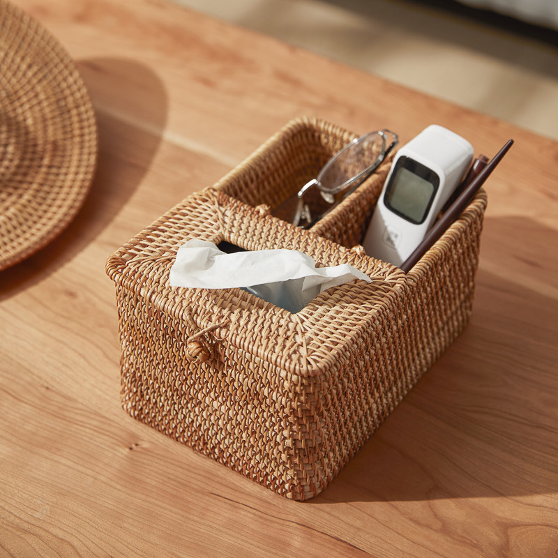 Vietnamese Rattan Creative Paper Towel Box Living Room Weaving Remote Control Containing Basket Rectangular Toilet Paper Box Folk Dining Paper Box