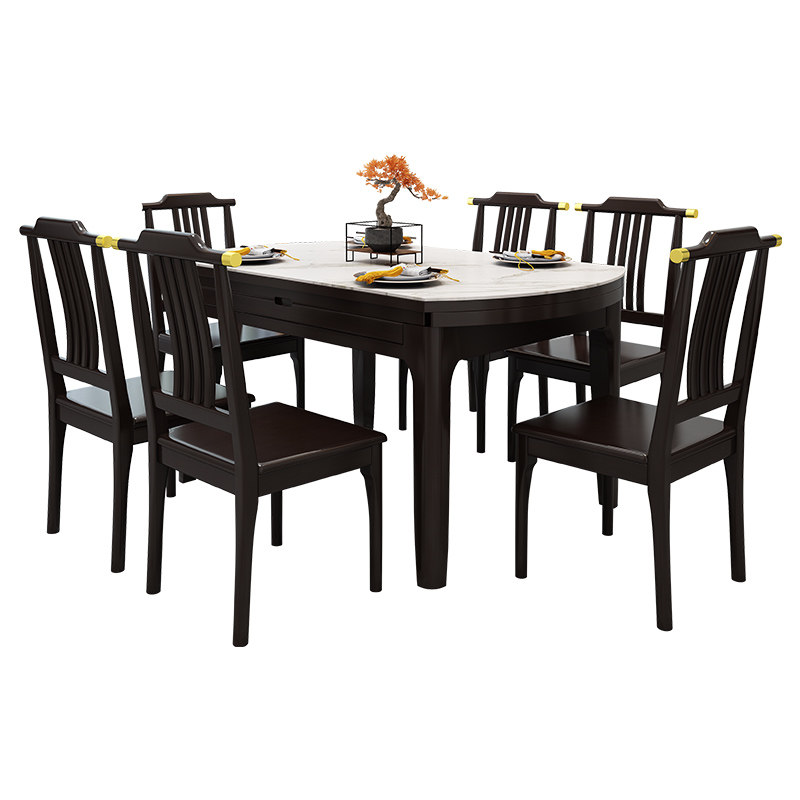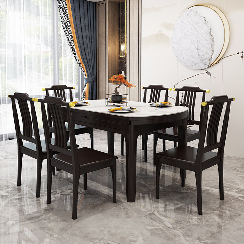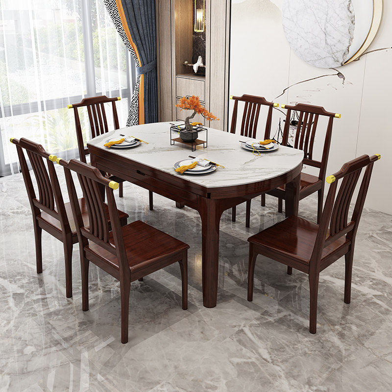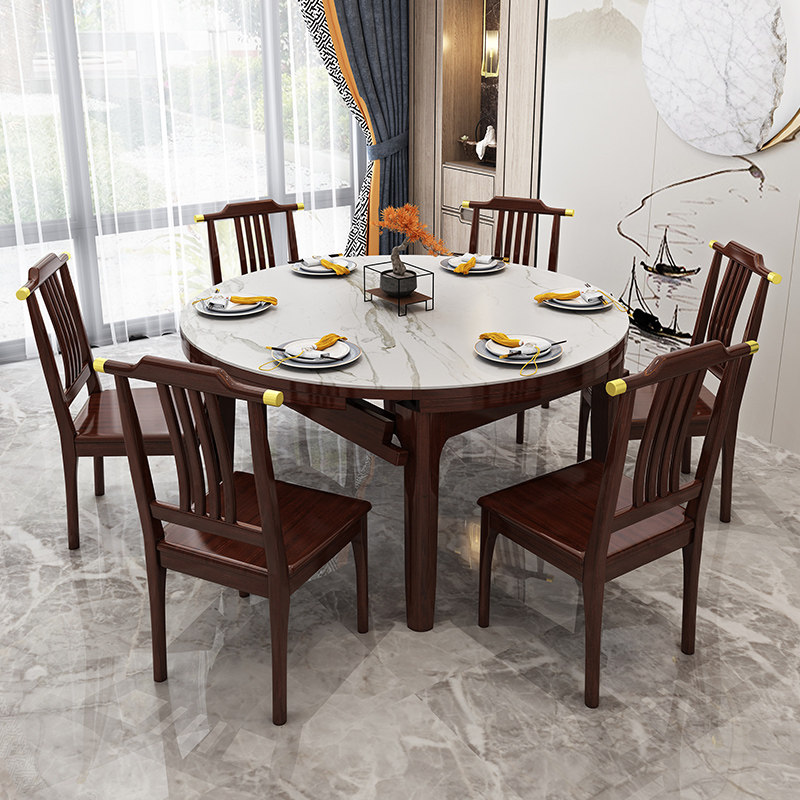 New Chinese-style slate all solid wood dining table and chair combination retractable and foldable 6-person household 1 5-meter square dual-use dining table
