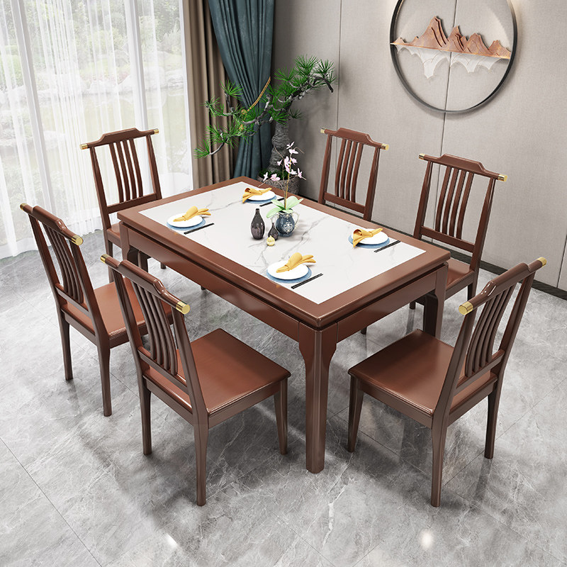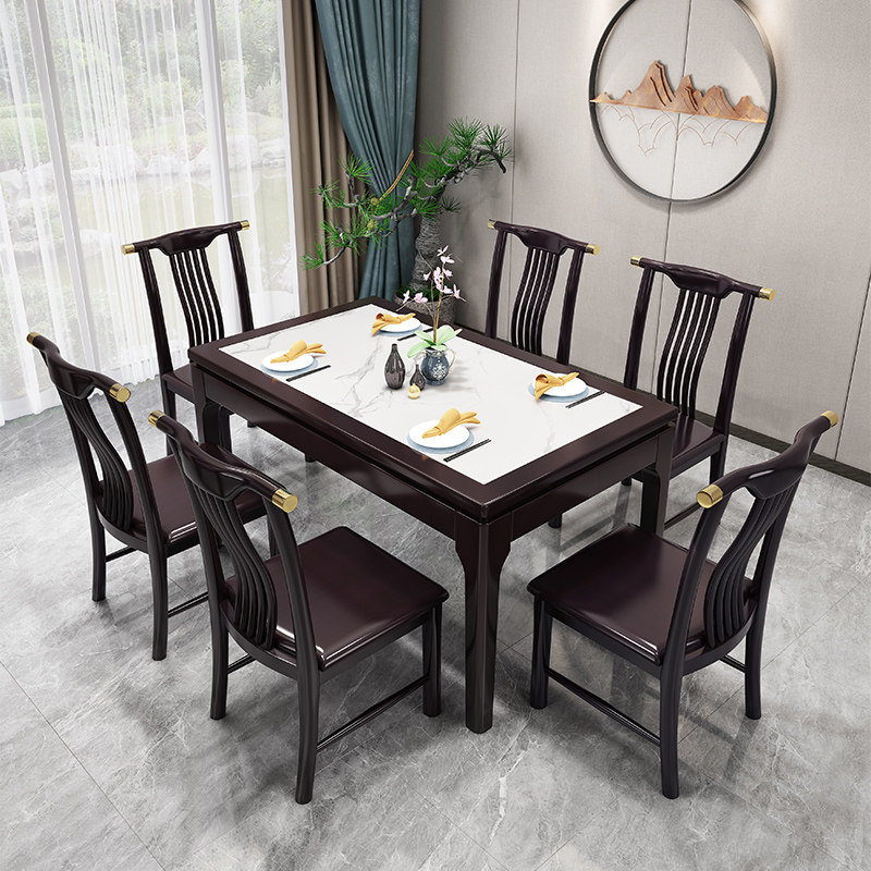 New Chinese-style solid wood slate dining table and chair combination modern minimalist 1 3 meters small apartment rectangular 6-person household dining table