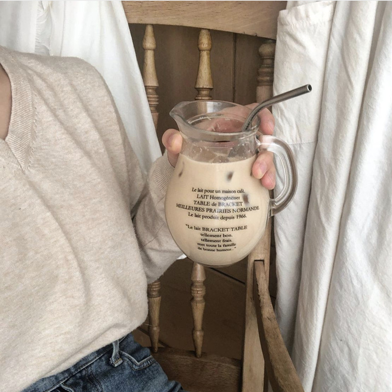 LS Korean coffee shop handle coffee milk jug large capacity cold drink glass juice drink coffee milk cup