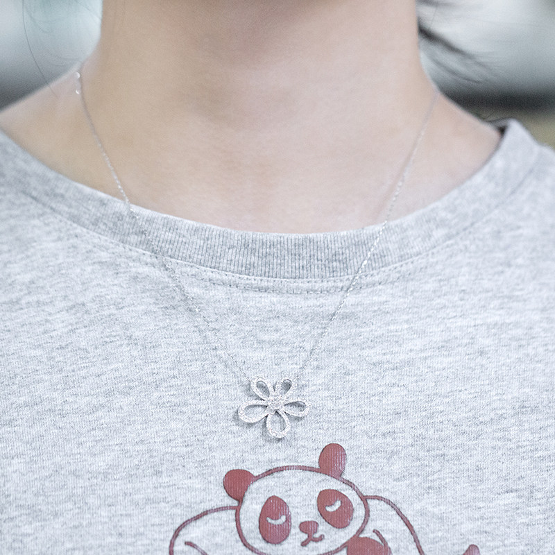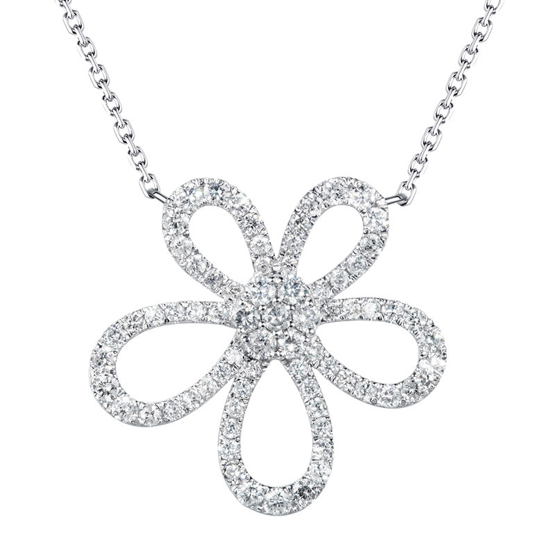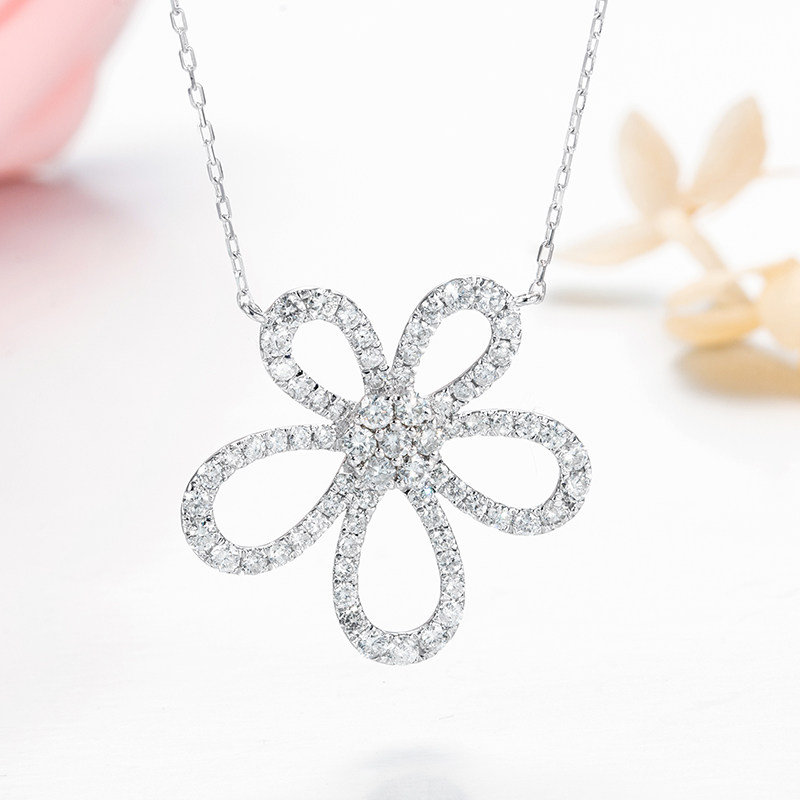 Liao Fu People Jewelry 18K Platinum Floral Diamond Necklace Women Big Flowers Real Drill Lock Bone Chain Neck Accessories Customize