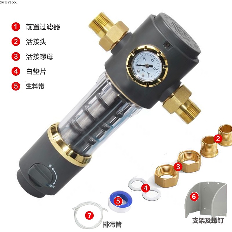 Self-cleaning pre-filter double meter 4 points copper live connection Self-cleaning pre-filter double meter 4 points PPR live connection Live connection