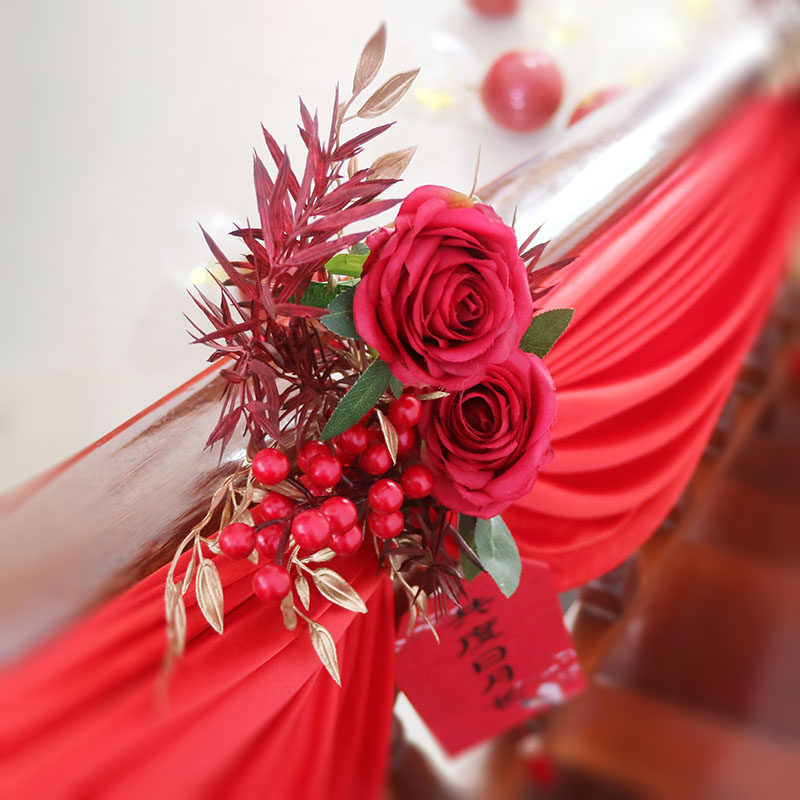 Covette * 2 m (must be taken without clapping) Mantle Curtain * 1 (custom made in 3 days shipping) Rose Playboy node Flower * 1 bundle of plum blossom node flowers * 1 bundle of joy with share hanging decoration * 1