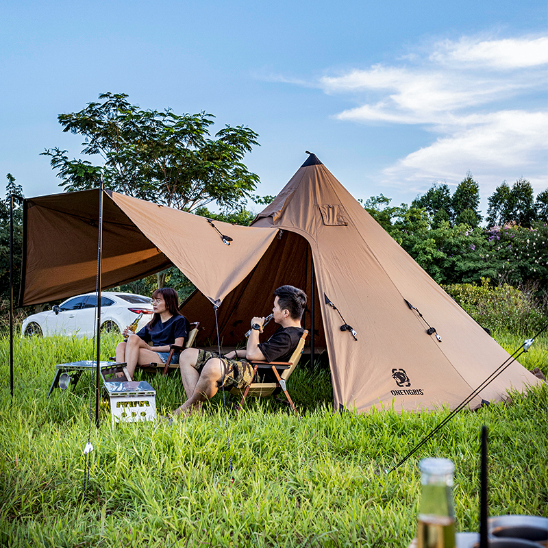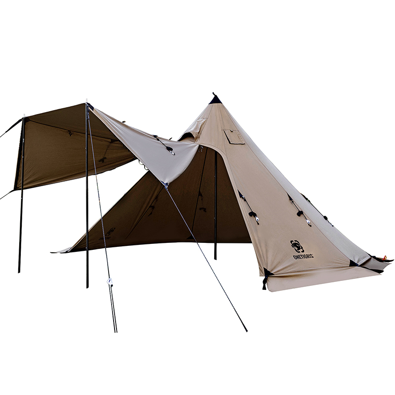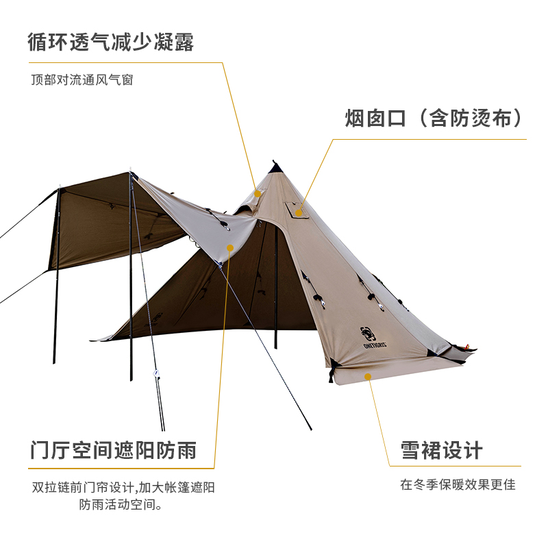 One Tiger Outdoor TC Cotton Pyramid Tent With Skirt Wild Camp With Chimney Mouth Field Camping Firewood Fire Stove Camp Tent