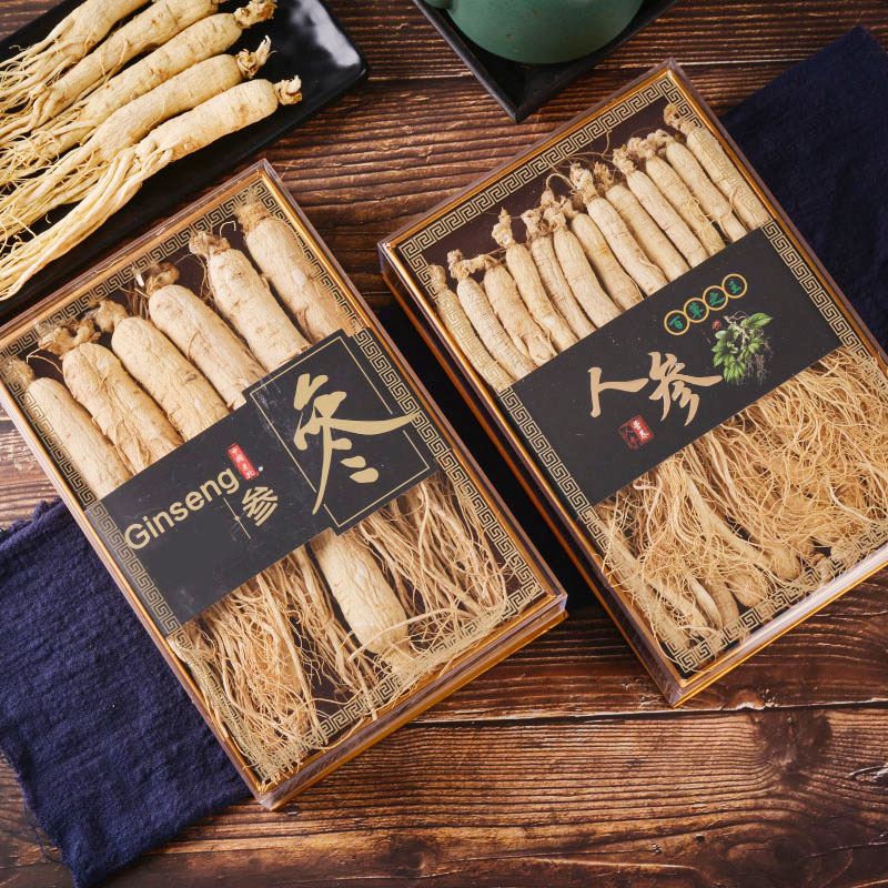 Raw sun white ginseng whole branch Changbai Mountain All need white ginseng Bubble stock Northeastern special production red ginseng dry wild Mountain Ginseng Gift Box