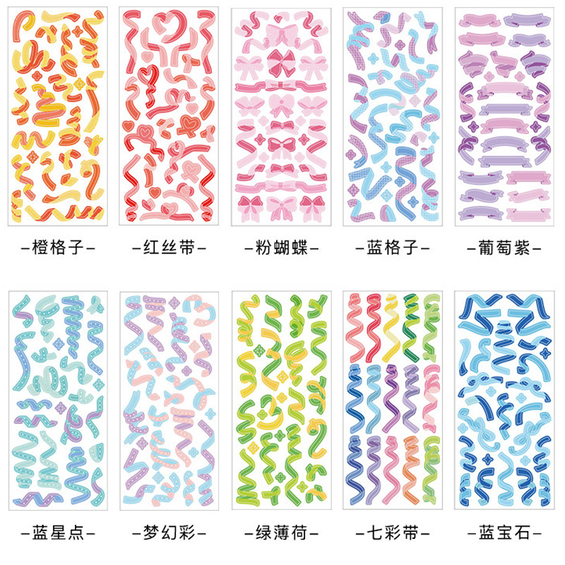 Orange Plaid Pink Butternut Red Ribbon Sapphire Blue Star Dot Green Mint Dream Color Grape Purple Seven Color Ribbon