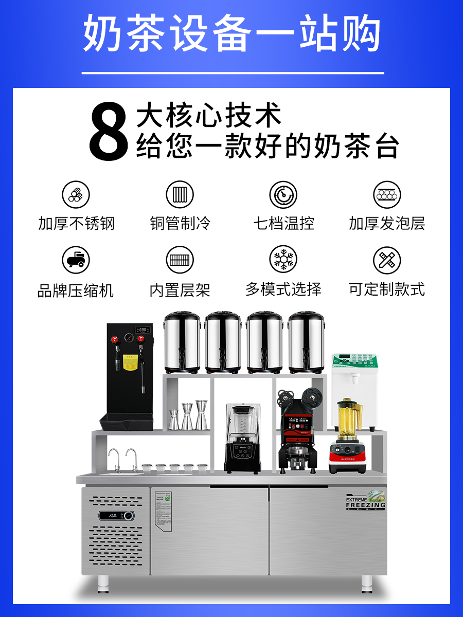 Le Conn Water Bar Counter Commercial Milk Tea Shop Equipment Full Bench Refrigerated Cabinet Drinks Store Milk Tea Operating Table