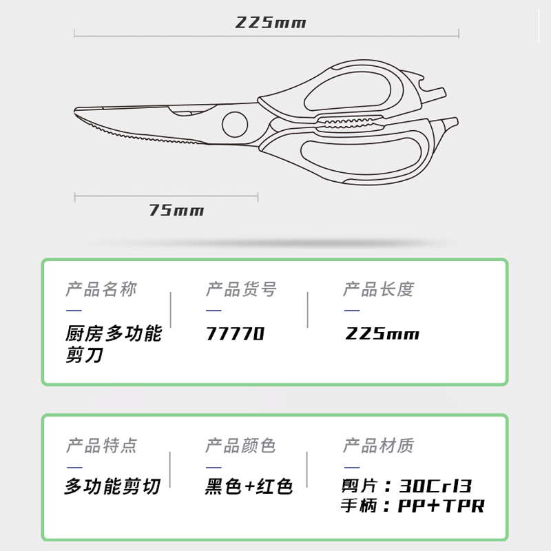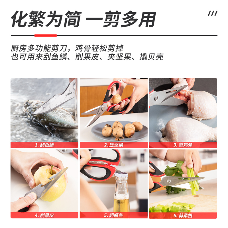 Deli Deli multifunctional kitchen scissors for killing fish special scissors chicken bone grilled meat large stainless steel scissors