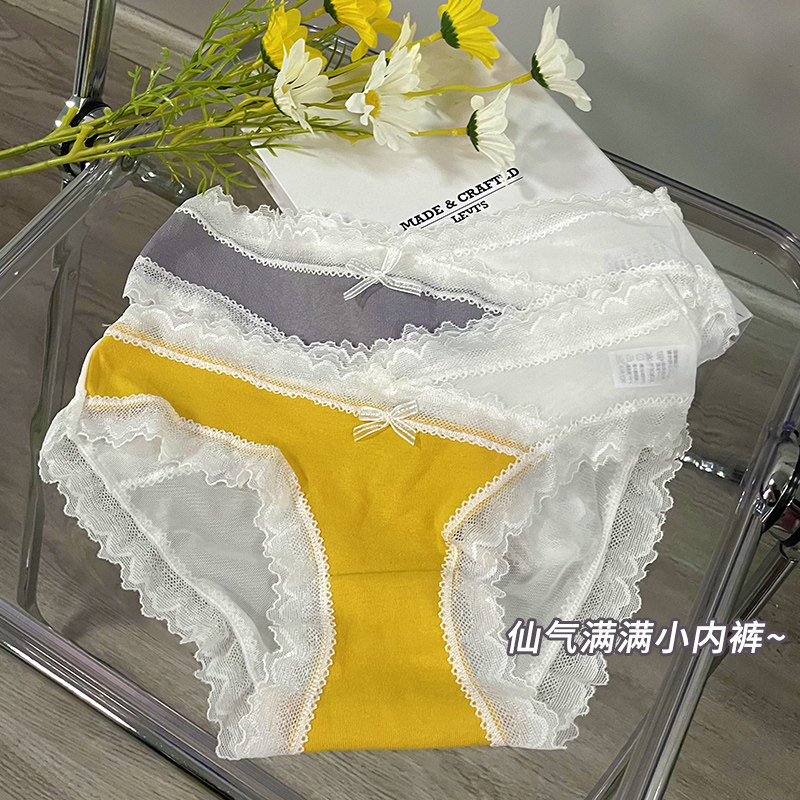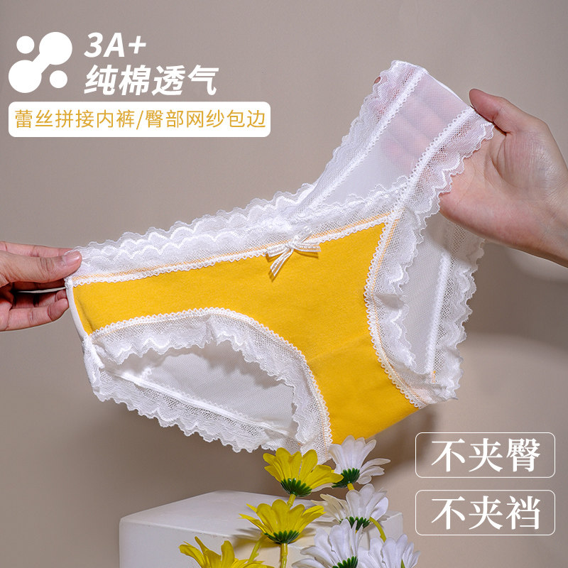 Summer thin underpants Women's new 2021 Burst Fashion Pure Cotton Lace Girl Raw Pure Desire Full Cotton Low Waist Triangle