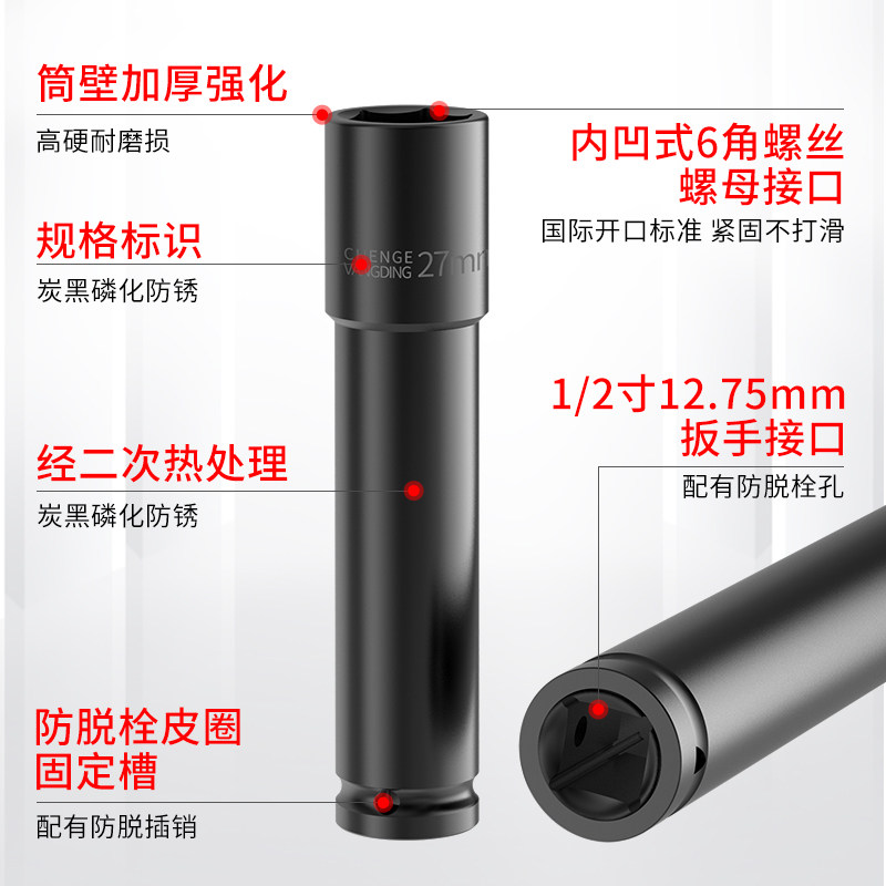 Electric screwdriver lengthened sleeve head 14 19 22 26 27mm 27mm set hollow sleeve head Hexagon Big Fly Pneumatic Wrench