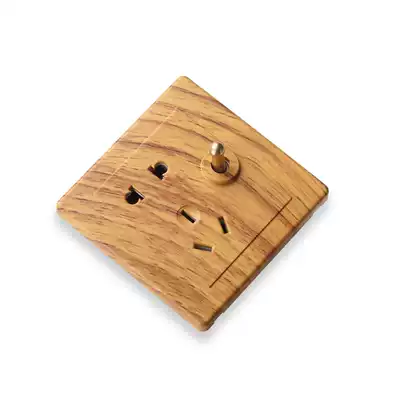 Type 86 yellow wood grain home decoration hotel retro old-fashioned one open five-hole socket with switch single control double cut Universal