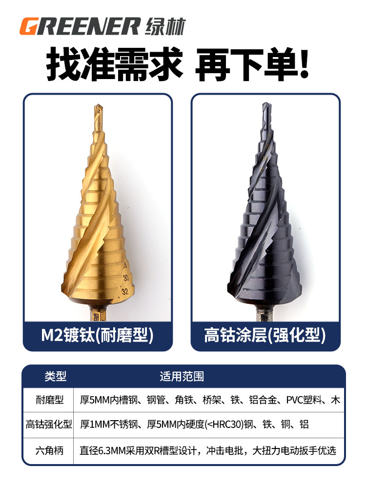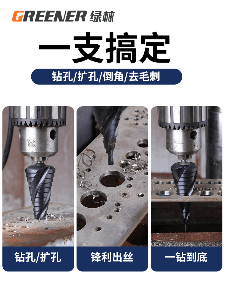 Green Forest Pagoda Drills Multifunction Universal Punching Ladder Steel Ultra Hard Reaming Stainless Steel Metal Special Drilling