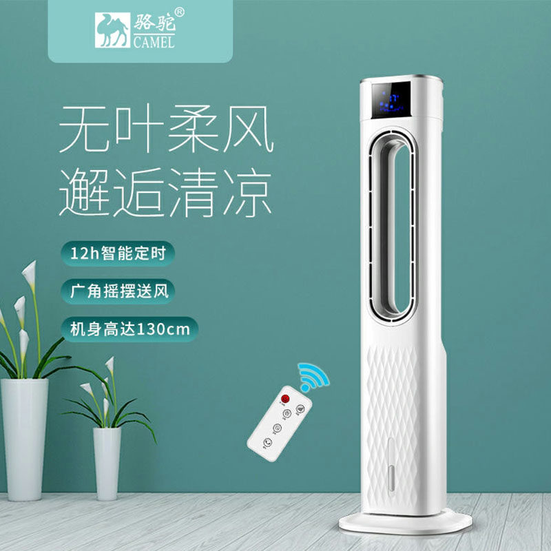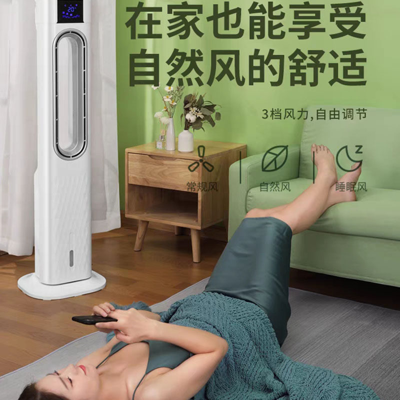 Cold air fan plus ice cube air conditioning fan strong wind household living room air cooler refrigerator bedroom vertical leafless