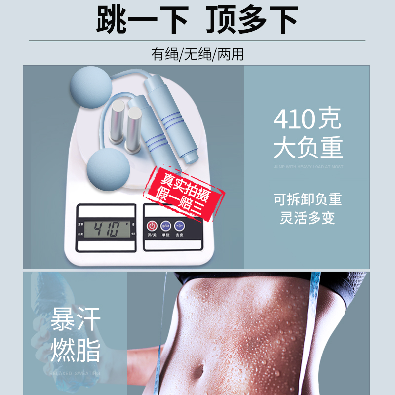 Wireless Jump Rope Fitness Weight Loss Sports Special Girls Professional Fuel Fat Training Men's Adult Gravity Negative Heavy Rope