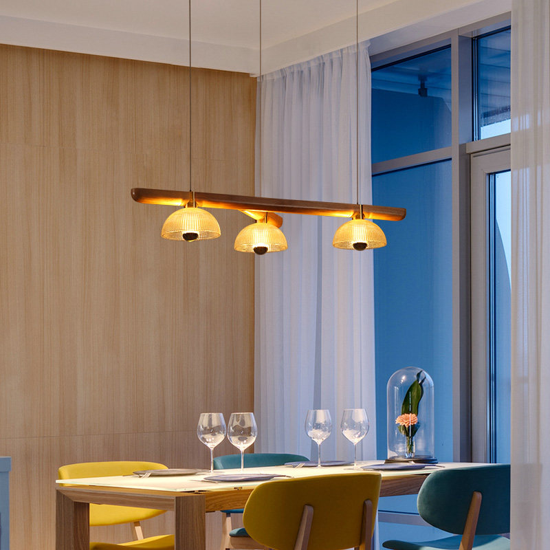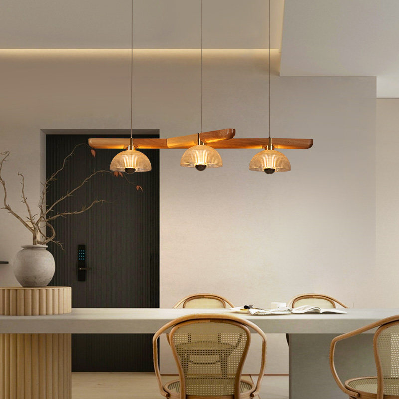 (9109-3 heads) PENDANT LIGHT ORIGINAL WOOD COLOR WARM LIGHT