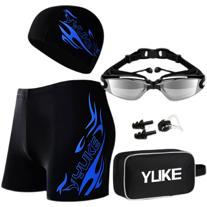 Swimming trunks swimming goggles men's quick-drying loose quick-drying flat angle adult professional anti-embarrassment swimming trunks swimming equipment set