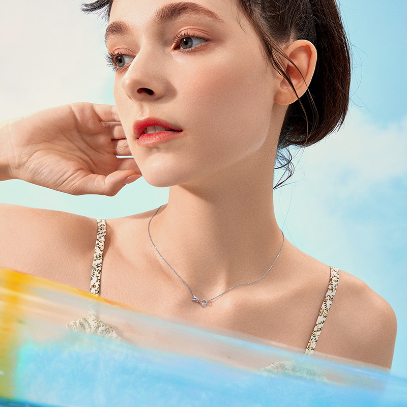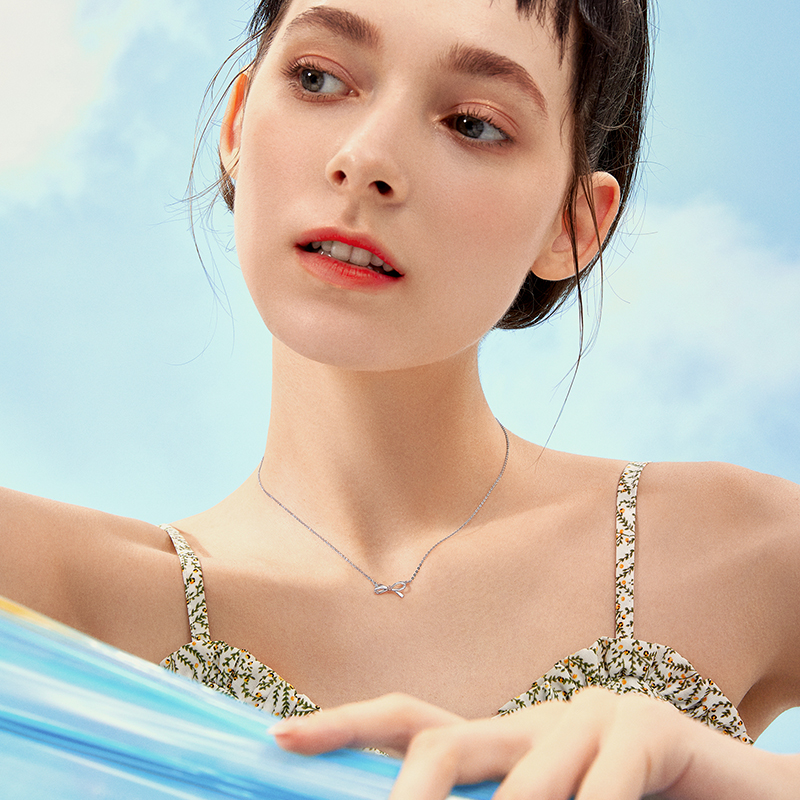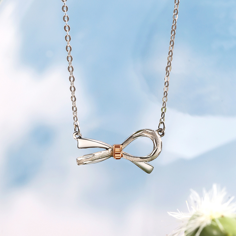 Weekly Six Foo 18k Platinum Platinum Butterfly Knot Pendant Necklace Woman Lock Bone Chain Adjustable Trekking pt950