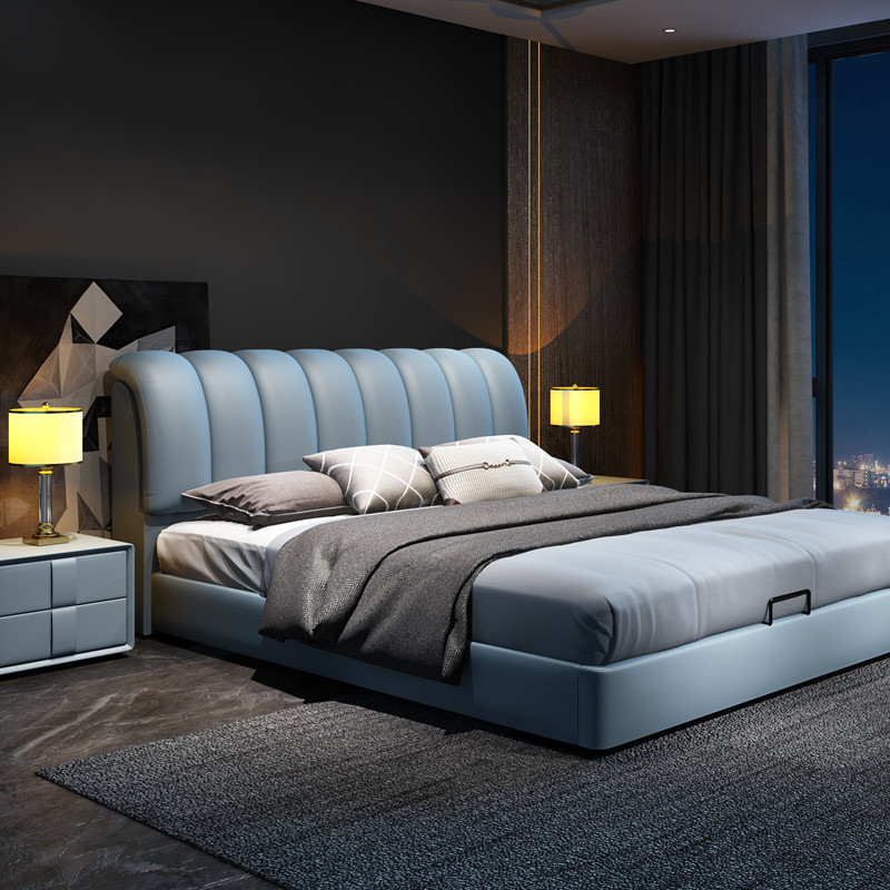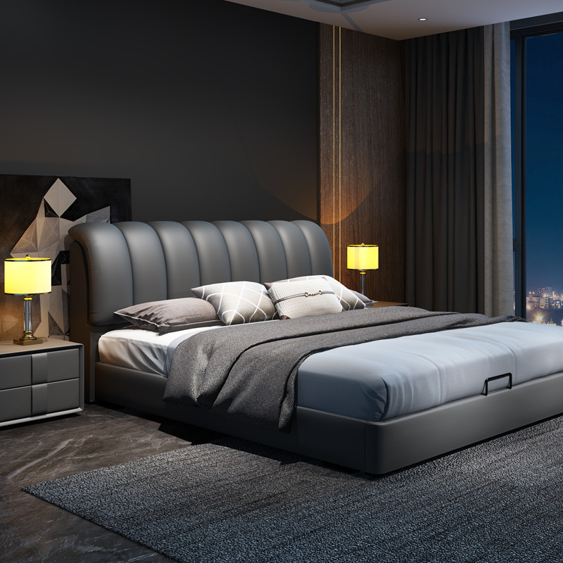 Nordic leather bed 18 meters small double bed master bedroom light luxury modern wedding bed soft bag simple storage furniture