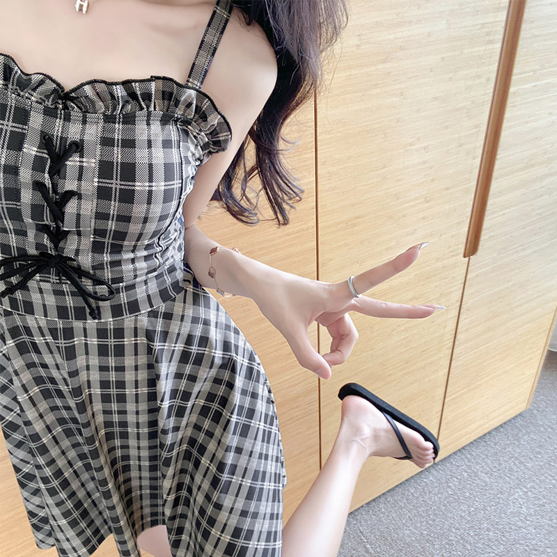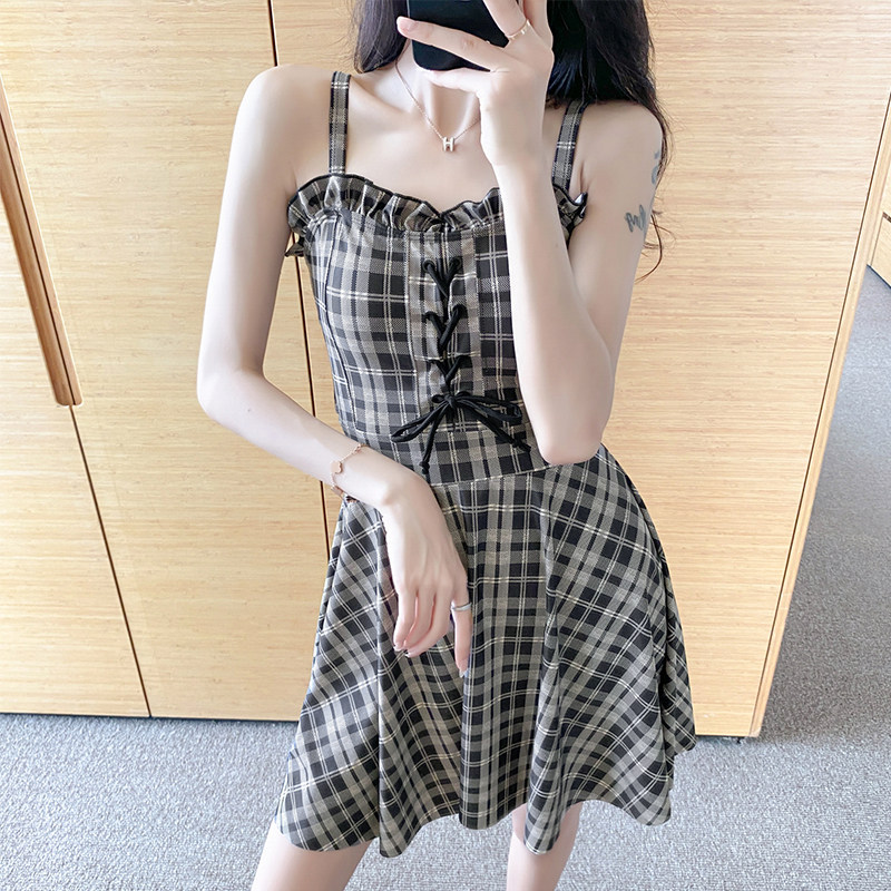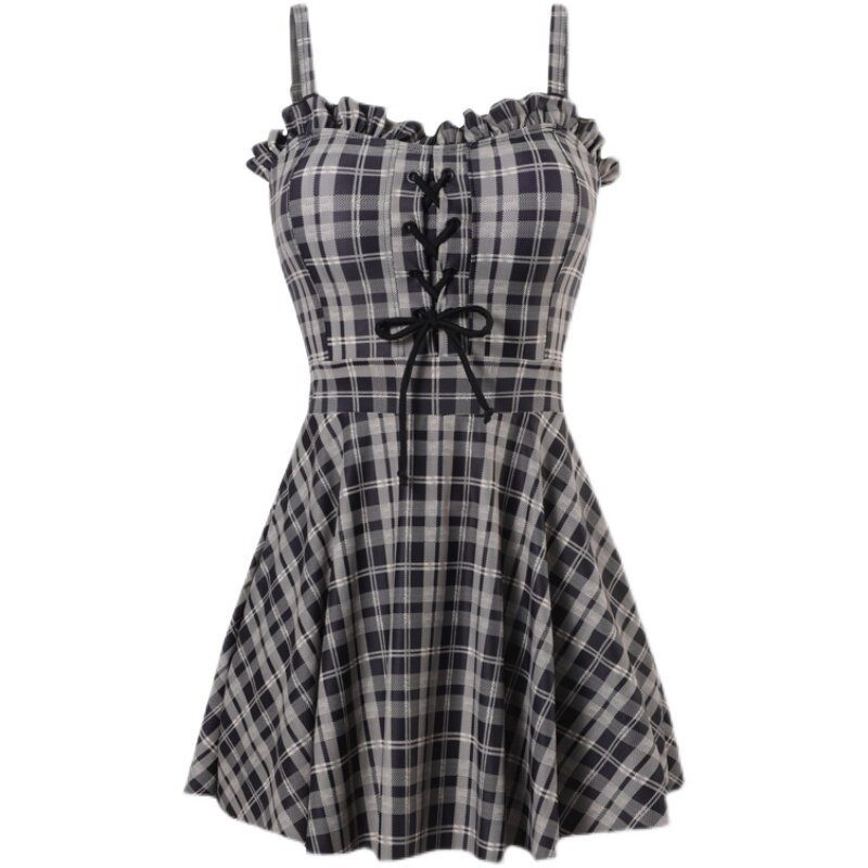 Plaid small fresh and conservative student small chest cover belly slimming 2021 new hot spring swimsuit female summer seaside ins