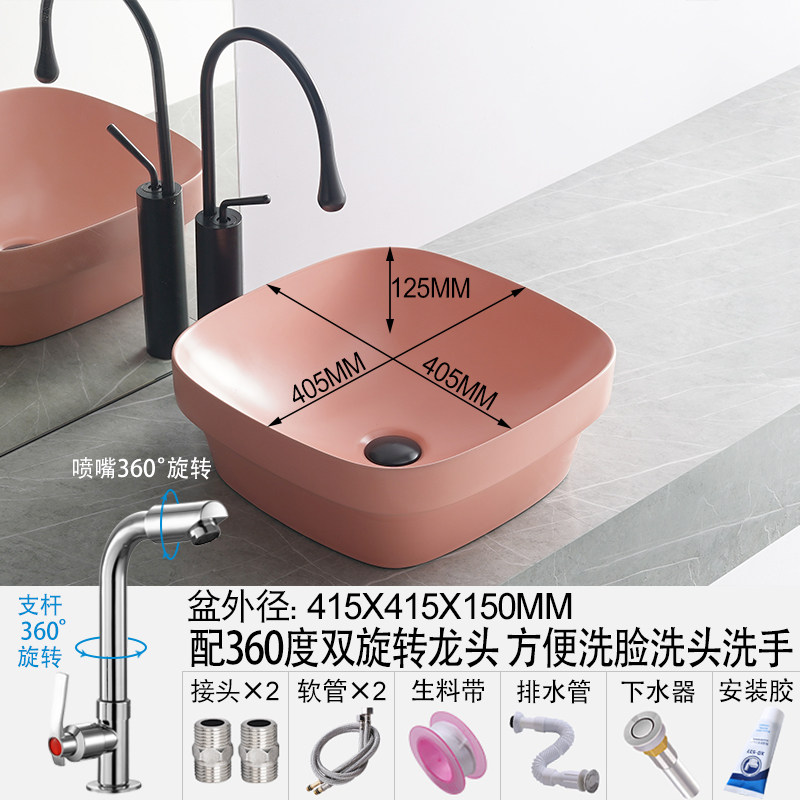 Pink Matt Ceramic Table Basin Wash Basin Wash Basin Wash Basin Hot And Cold Taps Small Wash Face Pool Water Basin