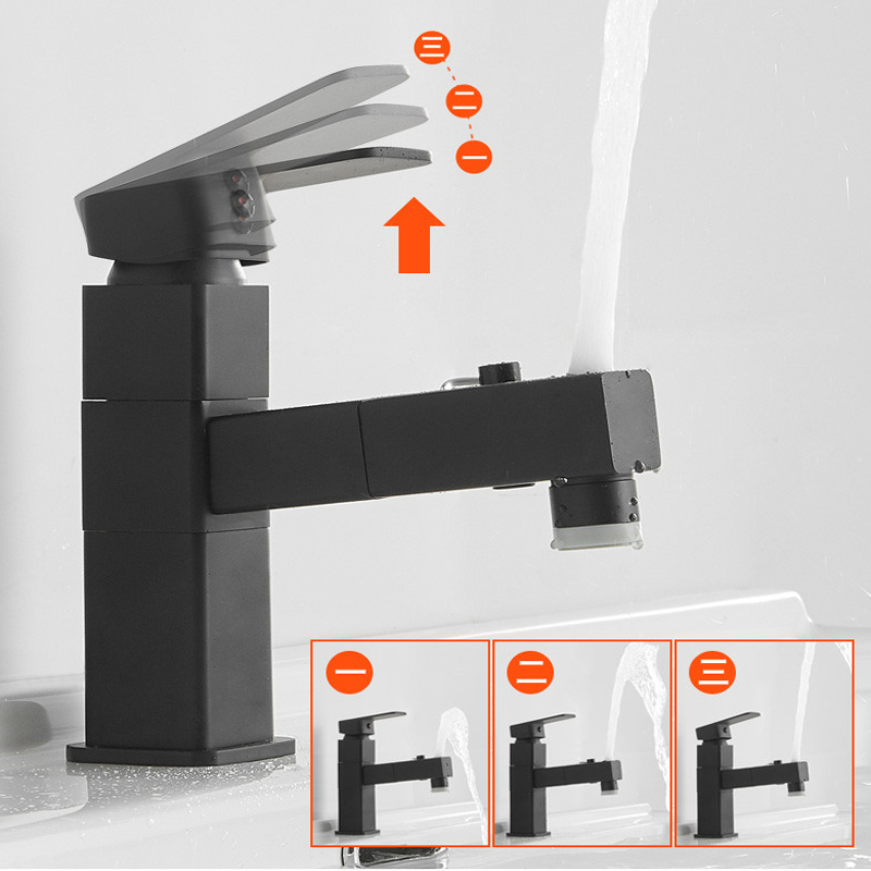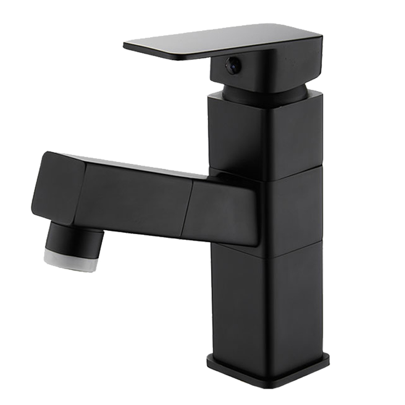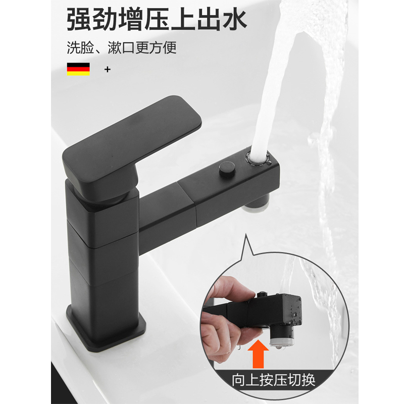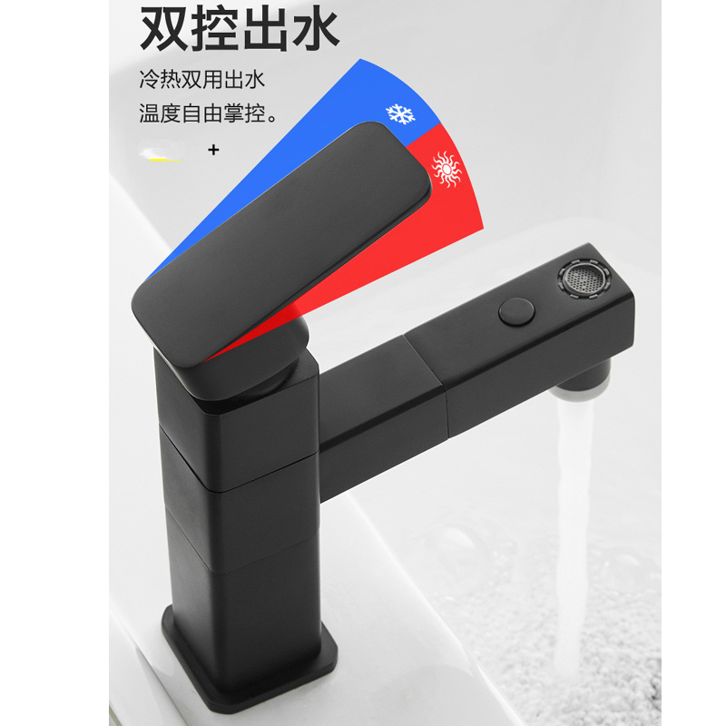 All-copper body black pull-out basin faucet retractable hot and cold sink basin bathroom wash faucet
