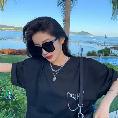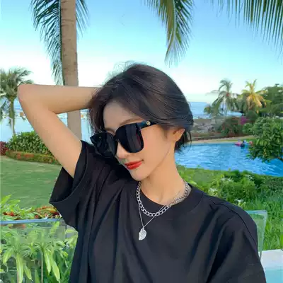 Joker black square polarized sun glasses myopia thin round face retro Korean sunglasses