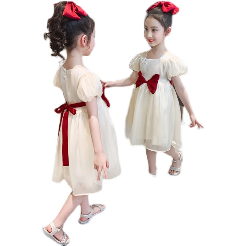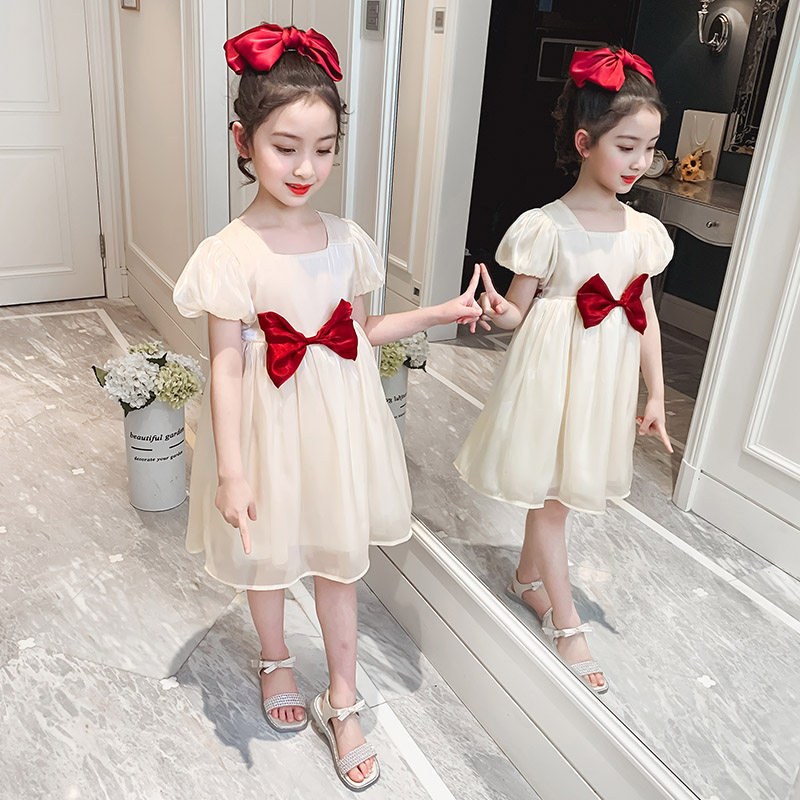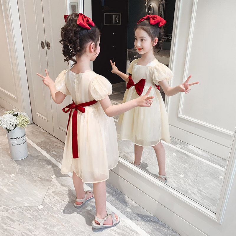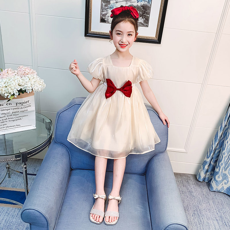 Girls dress summer dress new children's Western style pearl princess skirt girl summer middle and big children's dress gauze skirt