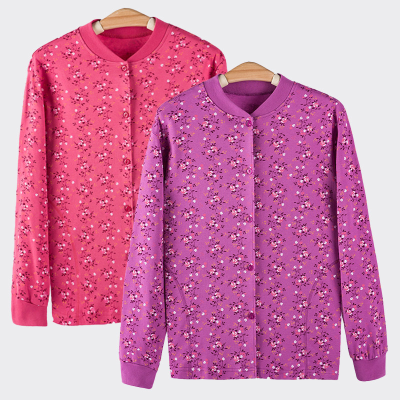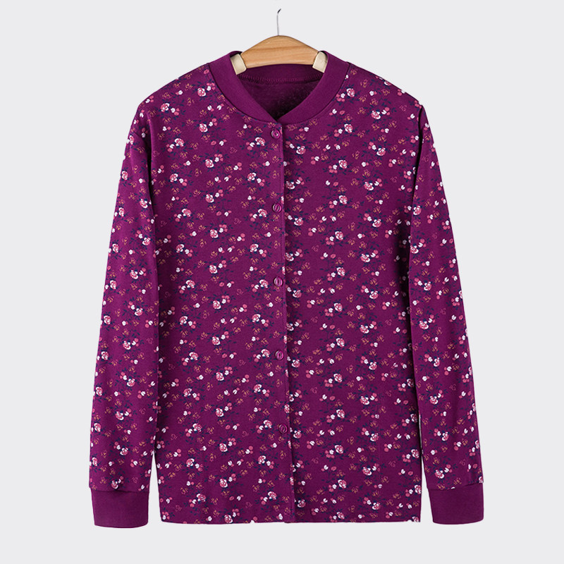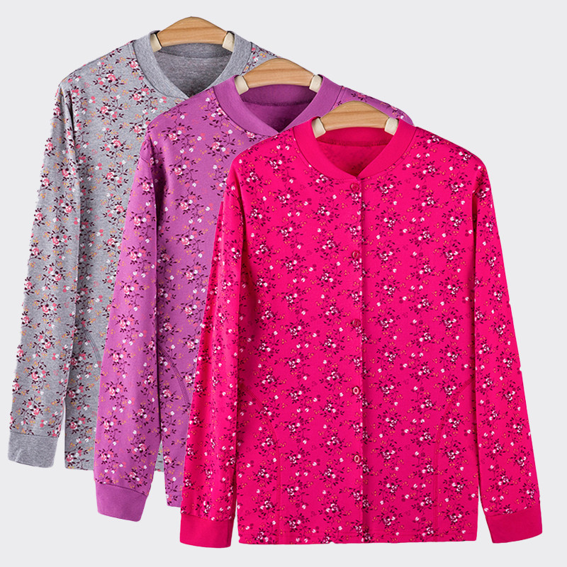 Middle aged lady Gats up overweight Autumn Clothes Print 100% Pure Cotton Cardiovert Jacket Blouse to lapels Mom fastening lingerie