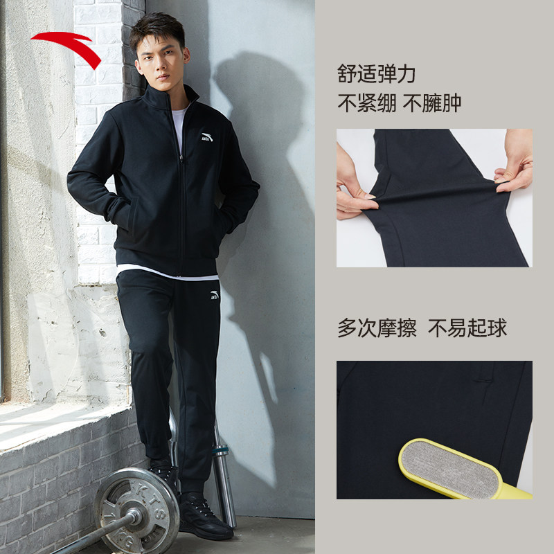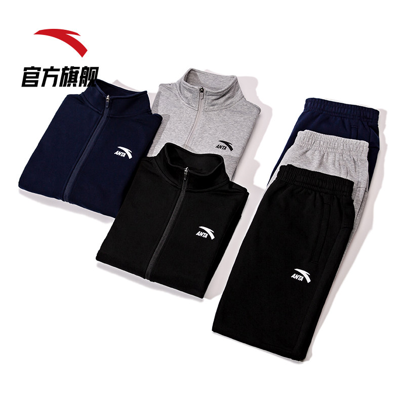 Anta sports suit men's autumn and winter fleece knitted casual thick cotton jacket running trousers two-piece casual wear