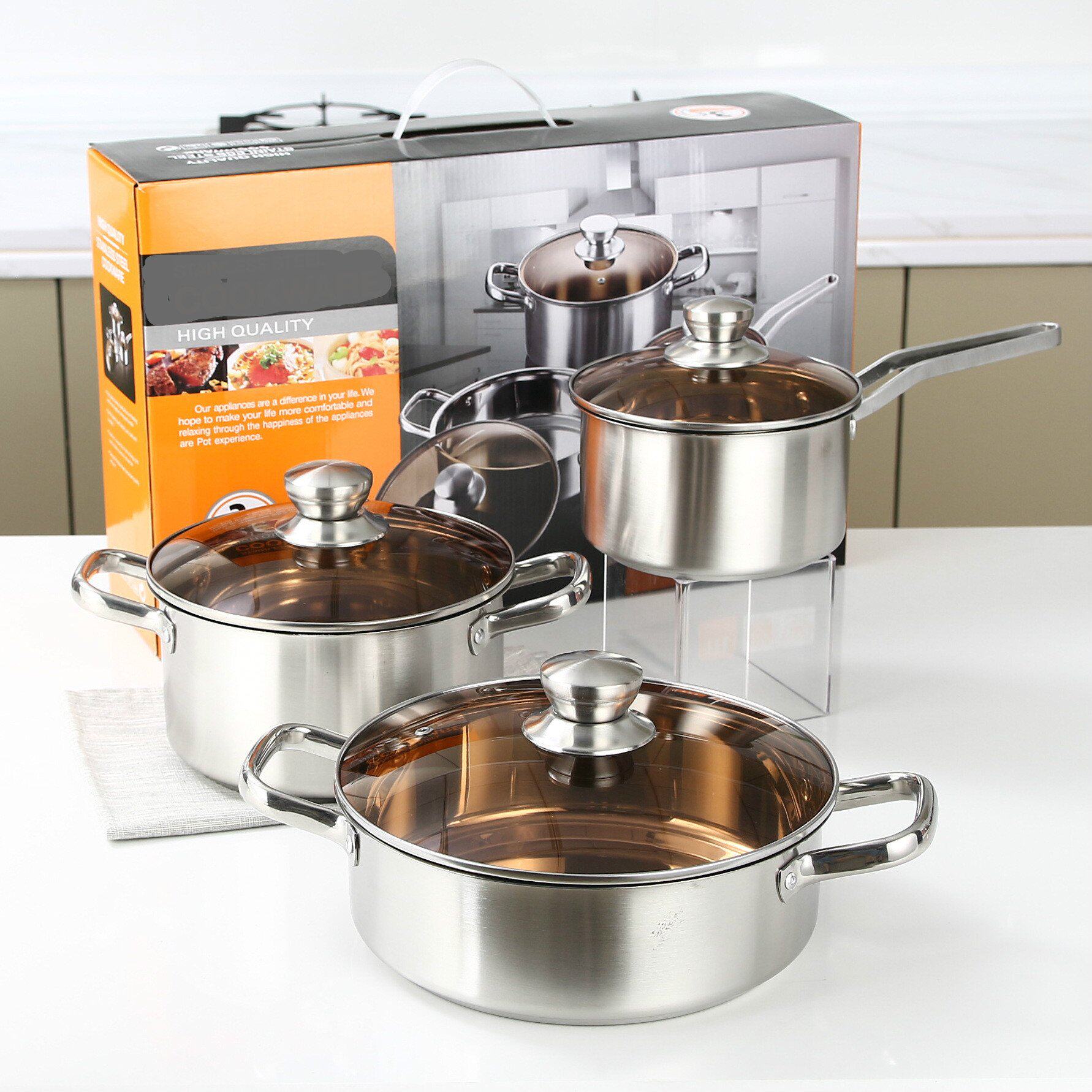 Stainless steel boiler suit combined without oil smoke without dipping into pan Three sets of frying pan frying pan soup pan milk pan