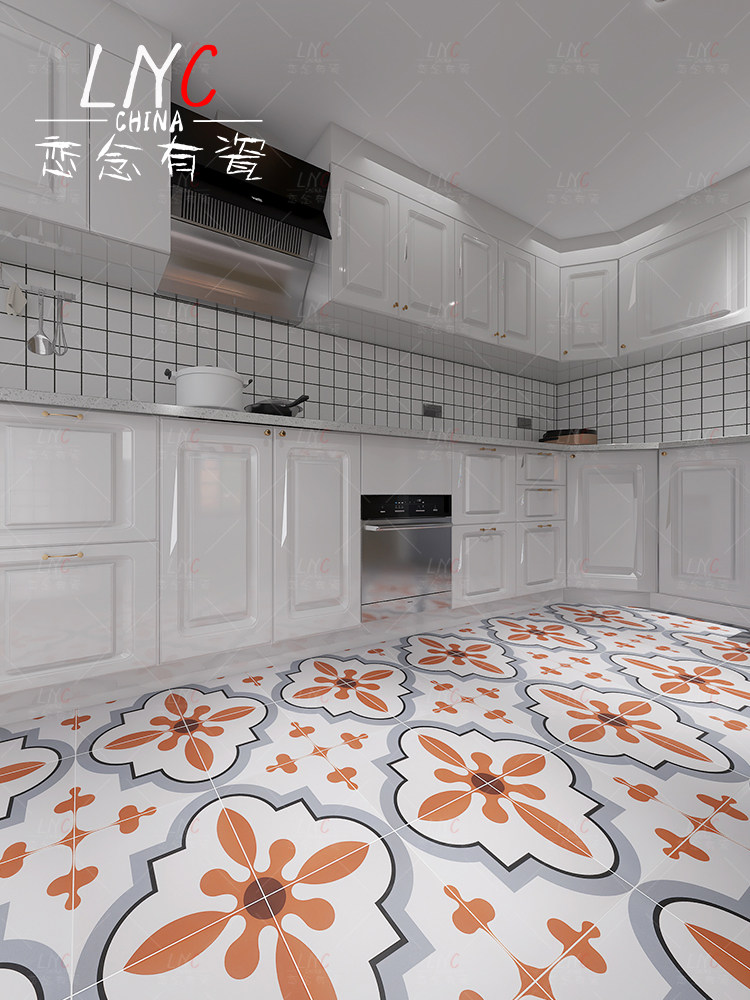 Love with porcelain Moroccan retro kitchen small flower brick orange powder room balcony non-slip floor tile famous tile