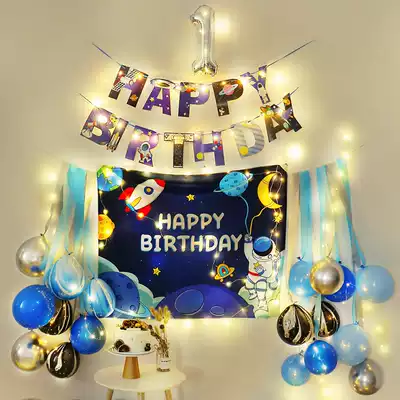 Space theme birthday decoration balloon luminous children one year old baby party scene layout background wall boy