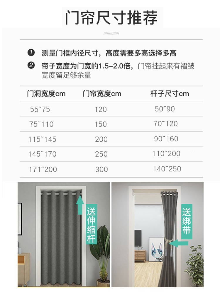 (suitable for 40-55 doors wide) curtain width 80 * height 150 white bar 35-55 strap (suitable for 40-55 doors wide) curtain width 80 * height 180 white bar 35-55