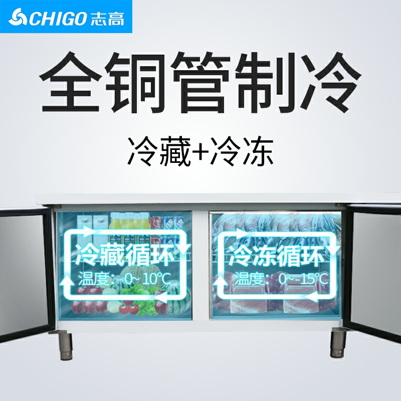 Chigo refrigerated workbench commercial freezer milk tea shop refrigerator equipment kitchen horizontal fresh-keeping flat cold workbench