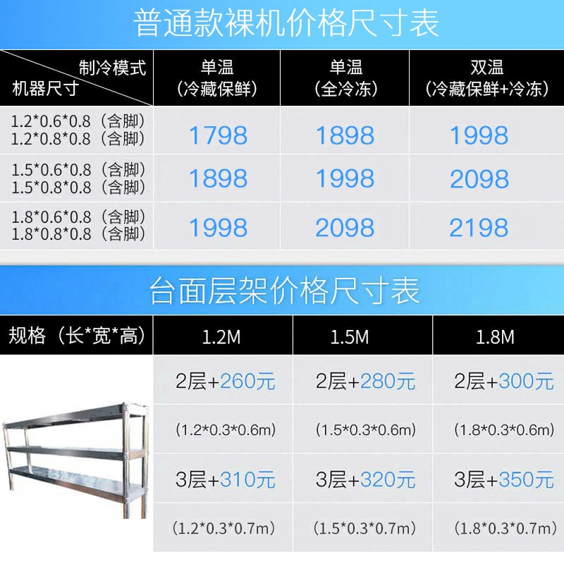 L1 2m*W0 6m*H08m-refrigerated workbench L12m*W08m*H08m-refrigerated workbench L12m*W06m*