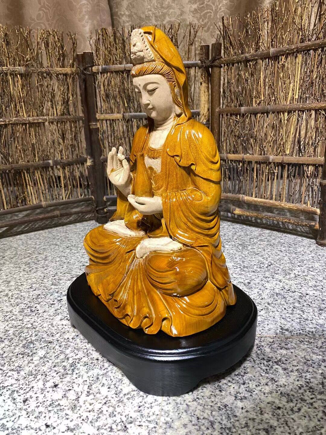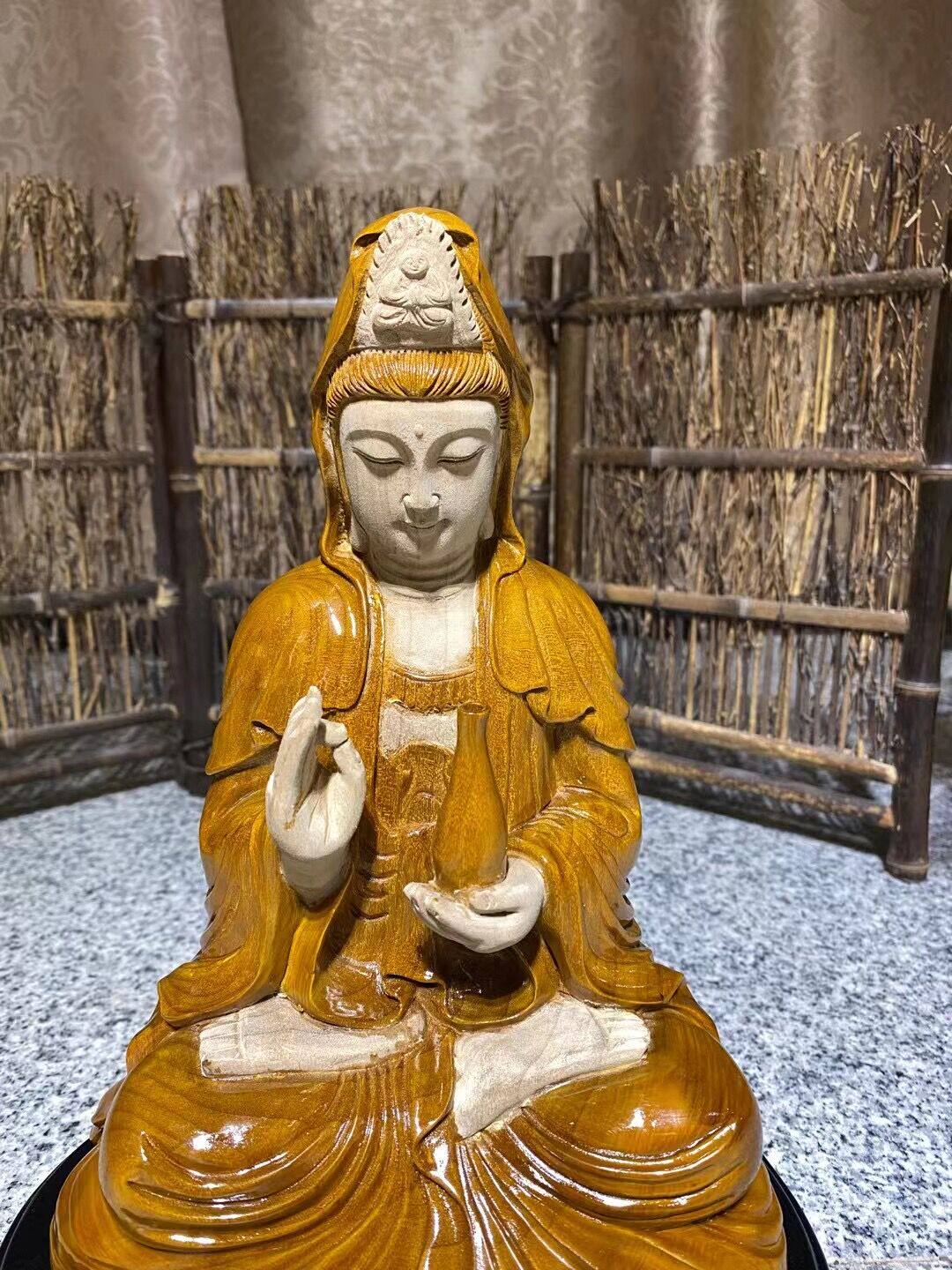 Jinsi Nanmu Guanyin Bodhisattva Guanyin Niangniang Buddha statue ornament frame Nan hand-carved pure bottle Guanyin craft gift ornament